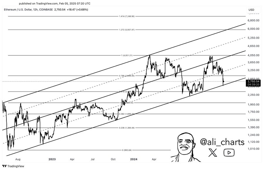 In a new post on X, analyst Ali Martinez has discussed about where Ethereum could head next based on a pattern forming in its 12-hour price chart. The pattern in question is an Ascending Parallel Channel from TA, which, as its name implies, involves two parallel trendlines that are sloped upwards.