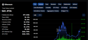 Ethereum’s price has surged by over 100% in the past year, supported by strong on-chain metrics. One crucial indicator is the total value locked (TVL) in Ethereum-based decentralized finance (DeFi) protocols. According to DefiLlama, the TVL on Ethereum has risen significantly since October 2023, reaching nearly $65 billion. This increase reflects more capital flowing into the ecosystem, suggesting positive market sentiment.