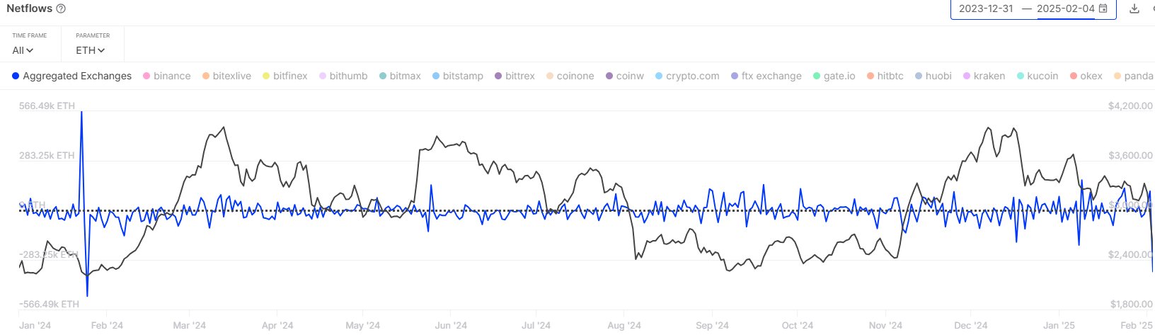 Now, here is a chart that shows the trend in the Ethereum Exchange Netflow over the past year: